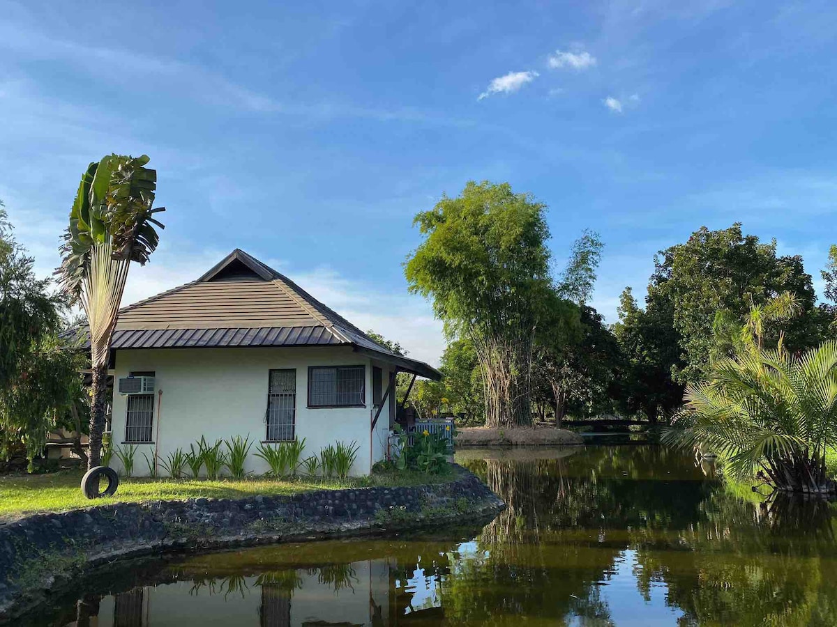 The Casita is nestled around a man-made lake with a pool right in front. It has a veranda at the rear where you can cook and dine by the lake. You can also go fishing for free. Around the Casita is home to some wild birds flying and tweeting around. And if you're lucky you may chance upon seeing fireflies in the night. With its vast area it is free to walk around and enjoy a bit of farm living.