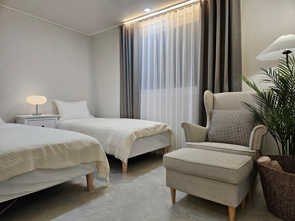 It is located at Exit 6 of Hongdae Station of the Incheon Airport Subway, and there are parks, cafes, shops and convenience facilities in the vicinity, and there are 3 subway lines, so transportation is convenient. There are 3 rooms, but only 1 team is available, so you can enjoy your trip quietly.