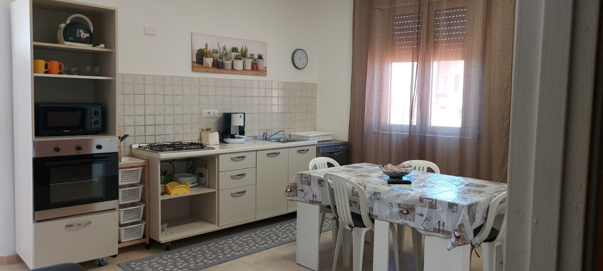 CIN code IT095038C2000Q8562 Relax with the whole family in this quiet accommodation. Newly renovated first-floor apartment in a central location, both to reach the beaches of Sinis, the marina of Torregrande, near the sanctuary and nursing home of Rimedio. On the main coastal road that goes to Bosa, Is Arenas and up to Alghero. 2 km from the center of Oristano, easily accessible from the 131
