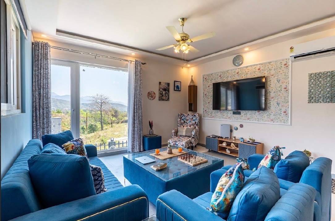 A 2BHK concept with Dehradun-Mussorie valley view, kept it for Workation ready with mountain and Doon-valley view. This Dehradun Mussorie home offers quiet premium and everyday comfort. Suggested stay in Dehradun-Mussorie Premium & thoughtfully curated furnishing layout create a space that feels both refined and welcoming. We dressed up this home in trendy way, ideal for guests who value privacy, comfort, simplicity and perfection. Designed in warm beige tones with a calm, minimal aesthetic.