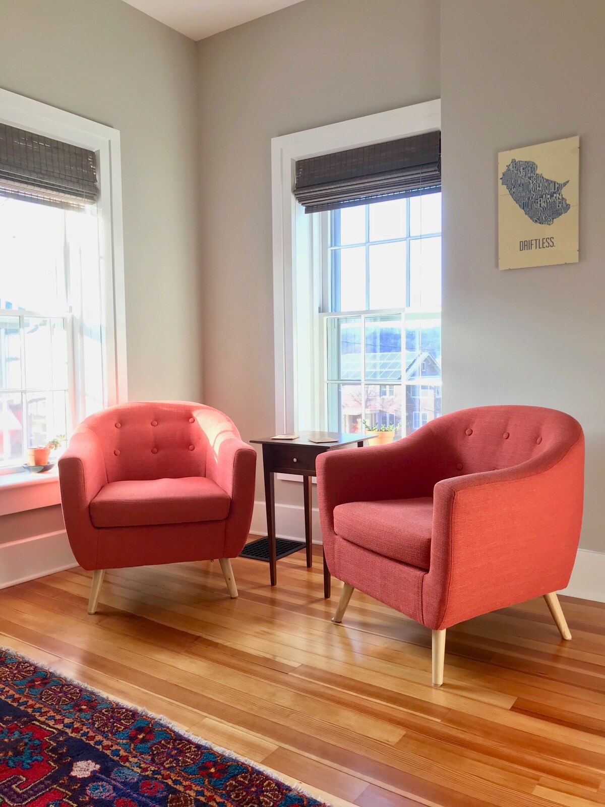 This apartment is on the second floor of a historic brick house just five blocks from downtown Decorah. The renovated space is full of natural light, handmade furniture, and plenty of books. The space includes a full bathroom, small kitchen, table, and seating area. Pulpit Rock Brewing Co, La Rana Bistro, Impact Coffee, Oneota Food Coop, Hotel Winneshiek, Vesterheim and all of downtown is an easy walk.