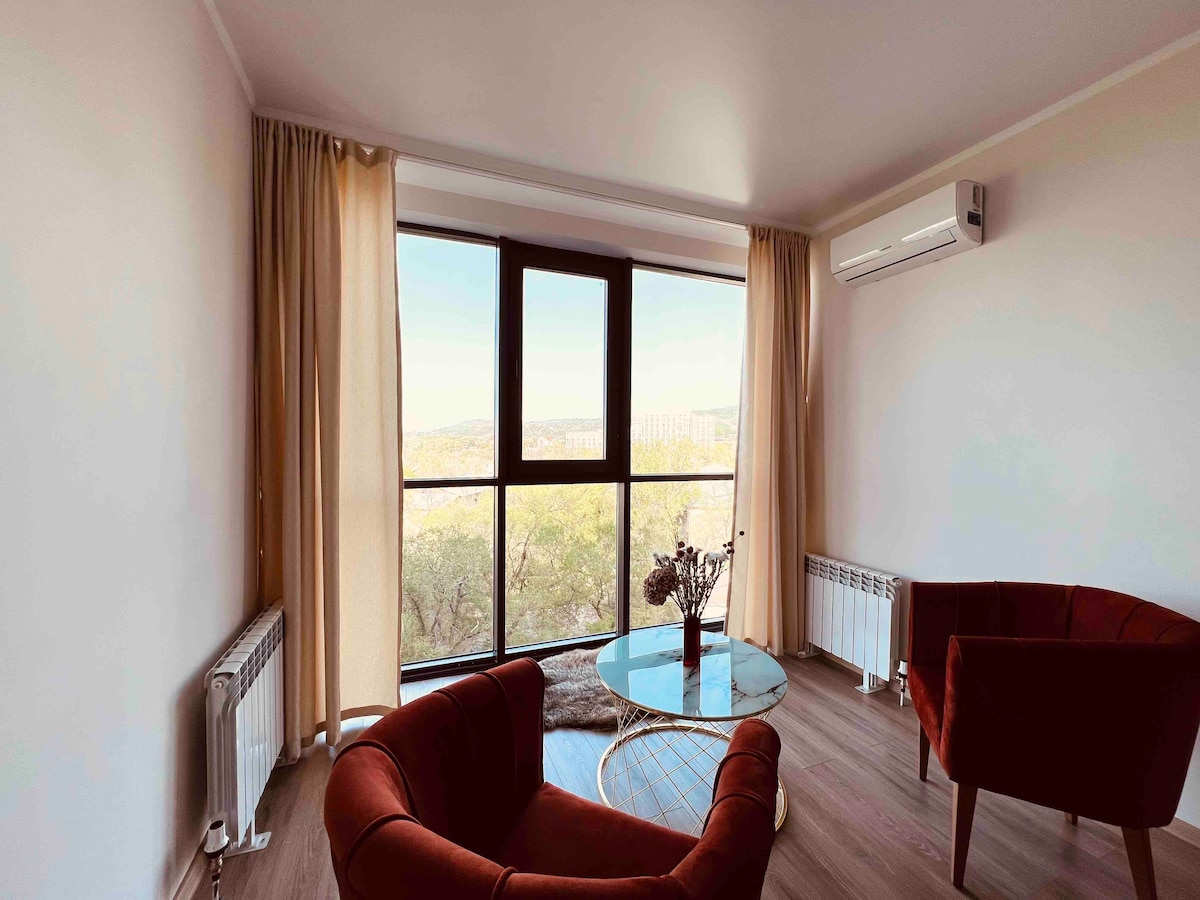 Apartments with a great view of the mountains and the city are waiting for their guests. You will plunge into an atmosphere of coziness and comfort. There are all necessary home appliances, bedding and towels. Close to the city's attractions. Within walking distance there are Starbucks, RIXOS hotel, national cuisine restaurants, karaoke bars, nightclubs, fitness centers, shopping malls. Convenient transport interchange. The residential complex has a 24-hour mini-market and a beverage store, a bakery with fresh pastries. Enjoy a stylish vacation in the city center.