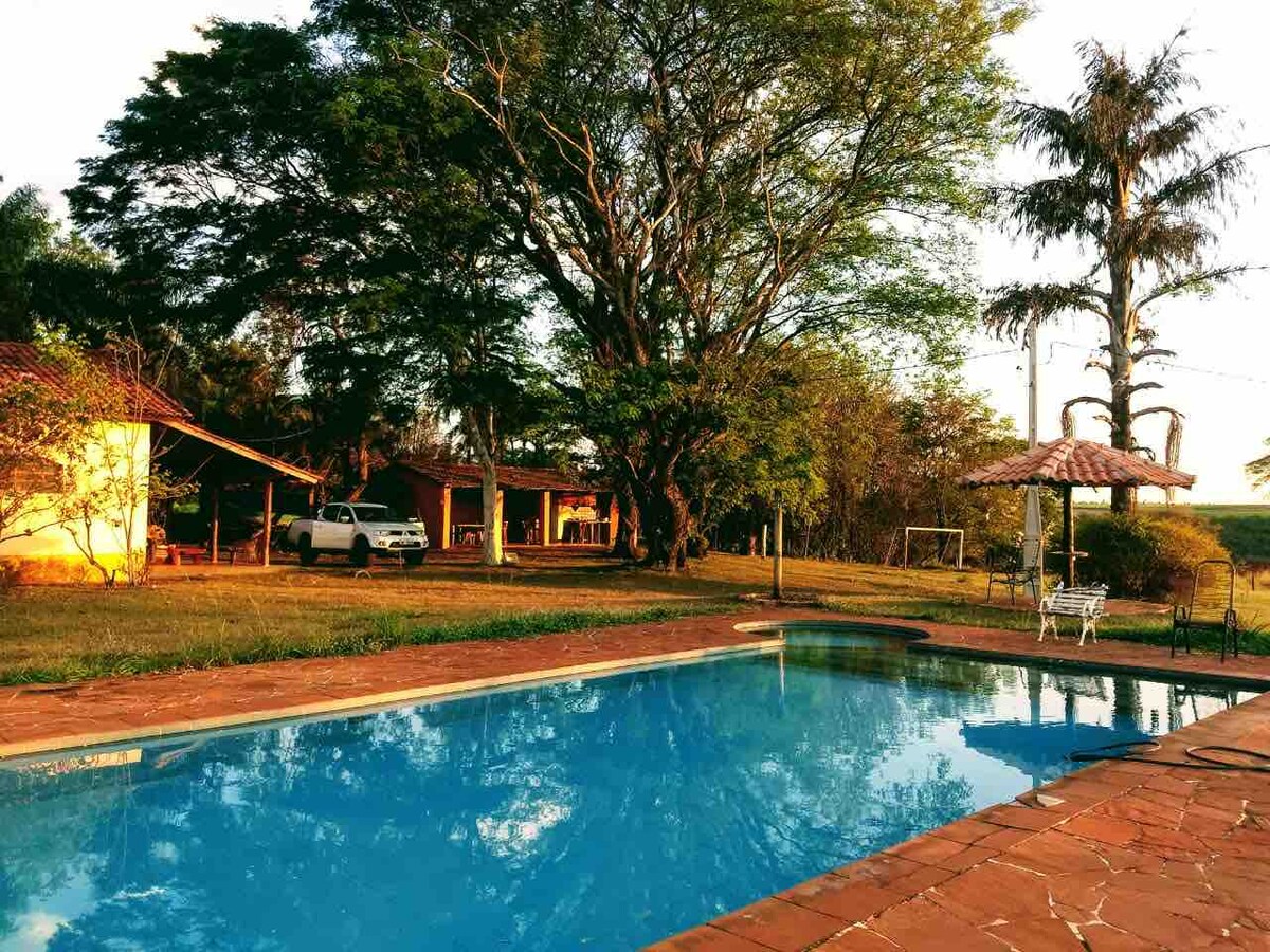 Edicula located in the center of the state of São Paulo, close to Brotas, within the city of Dourado, excellent for day use, in the best hotel farms in the region. Edicula with heated pool, smart TV, home theater, double bed, awnings, laser area, display refrigerator, wood stove with oven and barbecue, gas stove for cooking, etc...