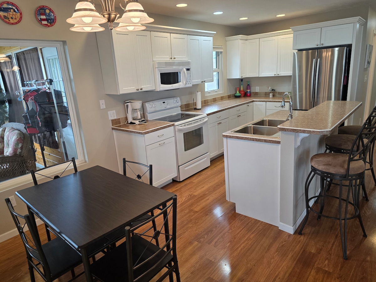 Bring the whole family to this great house with lots of room for fun. This has been my family home for almost 4 decades and our children were raised here. It has been entirely remodeled and upgraded most recently in 2019 with all new flooring, kitchen, kitchen appliances, and bathroom updates. Great corner lot, plenty of parking, high end appliances, and plenty of room to hang out! It’s a great place to hang out, entertain, or just visit the amenities of Denison