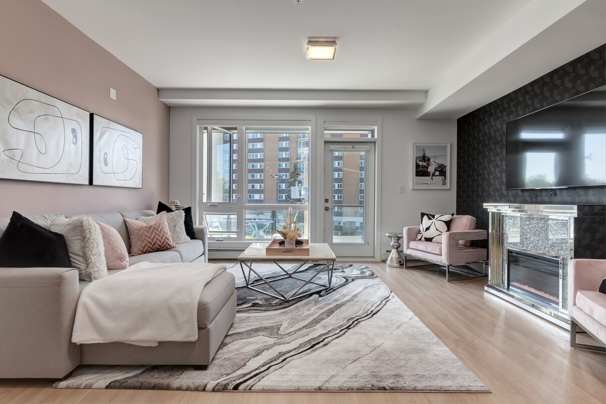 - Spacious 1-bedroom condo with tall ceilings - King size bed with lots of pillows - 55" TV with Apple play - Fast Wifi - Fully equipped kitchen - Underground Parking - Beautiful view of the Calgary city skyline. - Located in Inglewood, you will find local breweries, coffee shops, top restaurants, live music, and shopping - The Bow river, steps from your door! - Walking Distance to Stampede grounds - Watch the fireworks from the patio