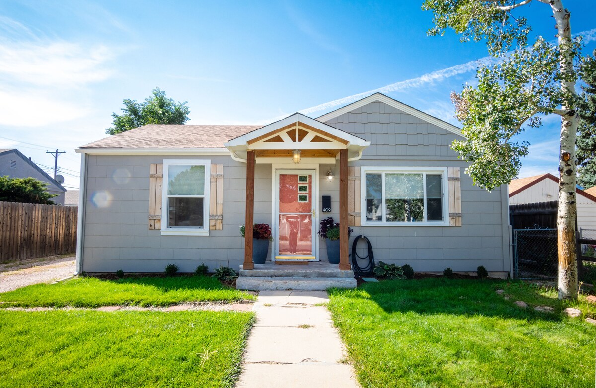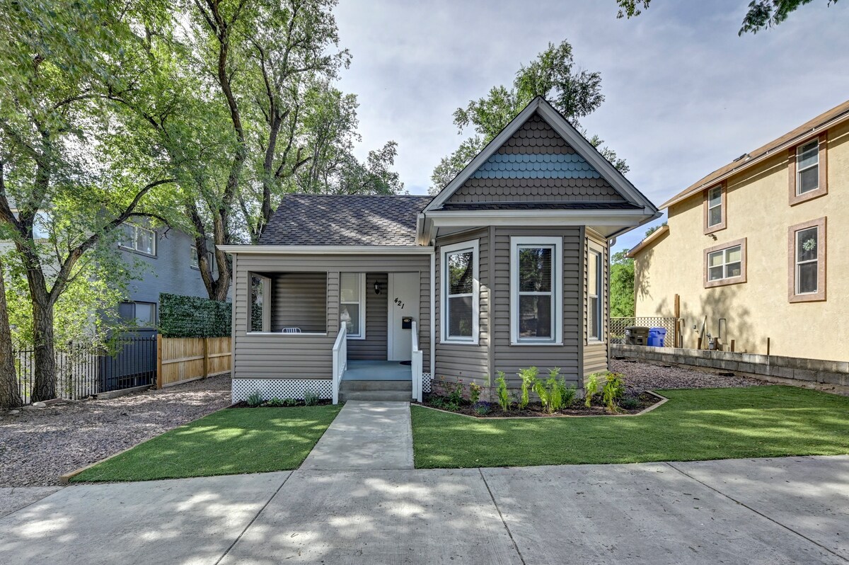 ★ " What a beautiful cottage! A lot of effort was clearly made to make this space resonate homey comfort!" ☞ Pet friendly ☞ Fully fenced backyard w/ dog door ☞ Walk, Bike or Drive 1 mile downtown ☞ 5 mins walk → Memorial Hospital, USOTC, Memorial Park ☞ Fully fenced backyard ☞ Back patio dining, charcoal BBQ, hammock ☞ SmartTV ☞ 18 mins to Garden of the Gods, C/S Airport, Manitou ☞ Fully equipped kitchen ☞ Private parking Perfectly sized for 2 guests and a kiddo. Human and/or the furry kind!