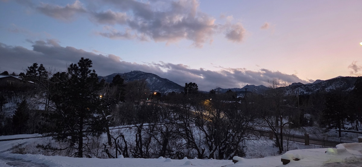 Enjoy stunning views of the sun setting behind Pikes Peak through floor-to-ceiling windows! Sip your morning coffee on the private patio as a family of deer wander by. Walk into the Garden of the Gods and then relax in the hot tub beneath the stars. Prepare a delicious meal with everything you need already provided for you; cookware, oils, and spices - and enjoy it with mountain views as your backdrop Discover your ideal Colorado Springs retreat in my lovingly renovated historic guesthouse!