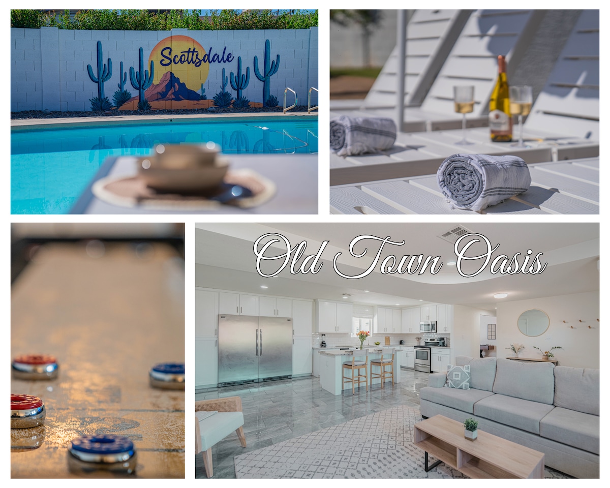 ➳ Walk to the heart of Old Town in 2 minutes (Seriously, as good as it gets) ➳ Sprawling backyard with heated pool and spacious hot tub ➳ Endless outdoor living space with fire pit, propane BBQ grill and dining area ➳ Two generous master suites and three bathrooms ➳ Collapsible wall in the living room for indoor-outdoor living Looking for something a little different? I’ve got 8 more top-rated Scottsdale homes, all 5 minutes or less from Old Town. Click my host profile to explore!