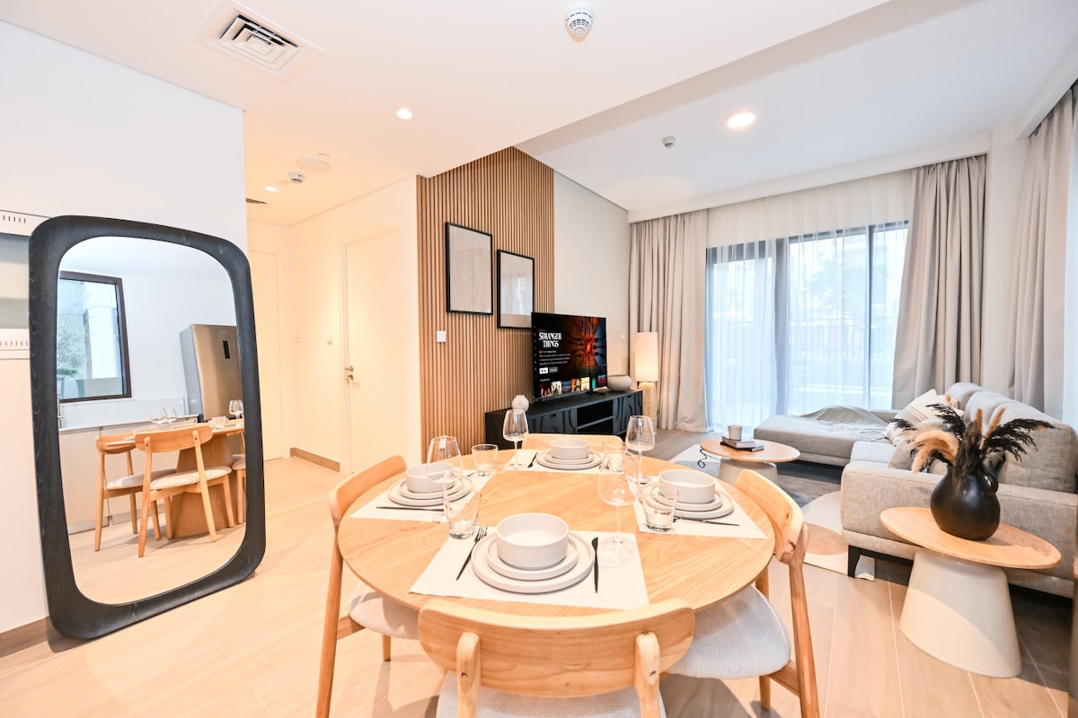 Welcome to your chic and modern 1BR apartment in Socio, located in the heart of Dubai Hills. Just a short walk from the vibrant Dubai Hills Park and Mall, this stylish space offers a cozy living area, smart TV, fully equipped kitchen, and a serene bedroom for restful nights. Enjoy premium building amenities including a gym, social lounge, and 24/7 security. Ideal for couples, solo travelers, or business guests seeking comfort, style, and convenience in one of Dubaiโs most desirable neighborhoods