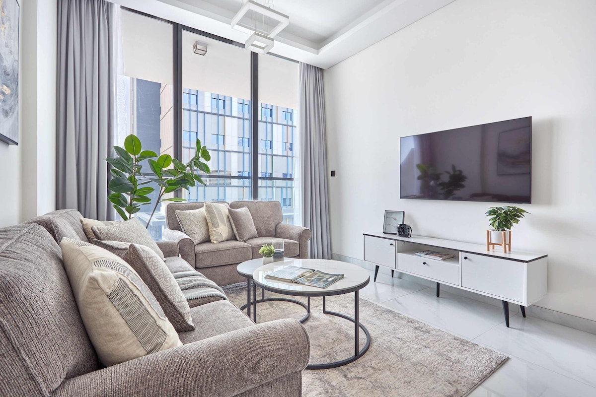 Welcome to your bright and modern 1-bedroom apartment in the heart of Jumeirah Village Circle – perfect for couples, solo travelers, business guests, and even small families. Thoughtfully furnished and filled with natural light, this home offers everything you need for a comfortable and relaxing stay. Whether you're visiting for a few days or planning a longer stay, you’ll feel right at home. Kick back and relax in this calm, stylish space.