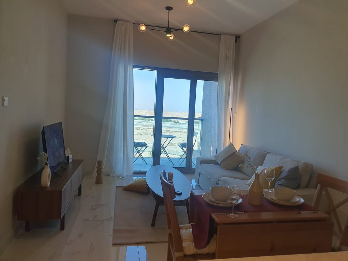 Cozy one bedroom fully furnished apartment with large balcony to enjoy a cup of coffee or gather with friends! You will be neighboring the Dubai Expo, only 8 minutes from Al-Maktoum International Airport and 25 minutes to the walk and Dubai Marina crowded centers. This cozy one bedroom apartment in Dubai south is the right place to stay during the Expo 2020, the apartment is recently renovated with simple though comforting and complete furniture. located in a mid rise new residential district.
