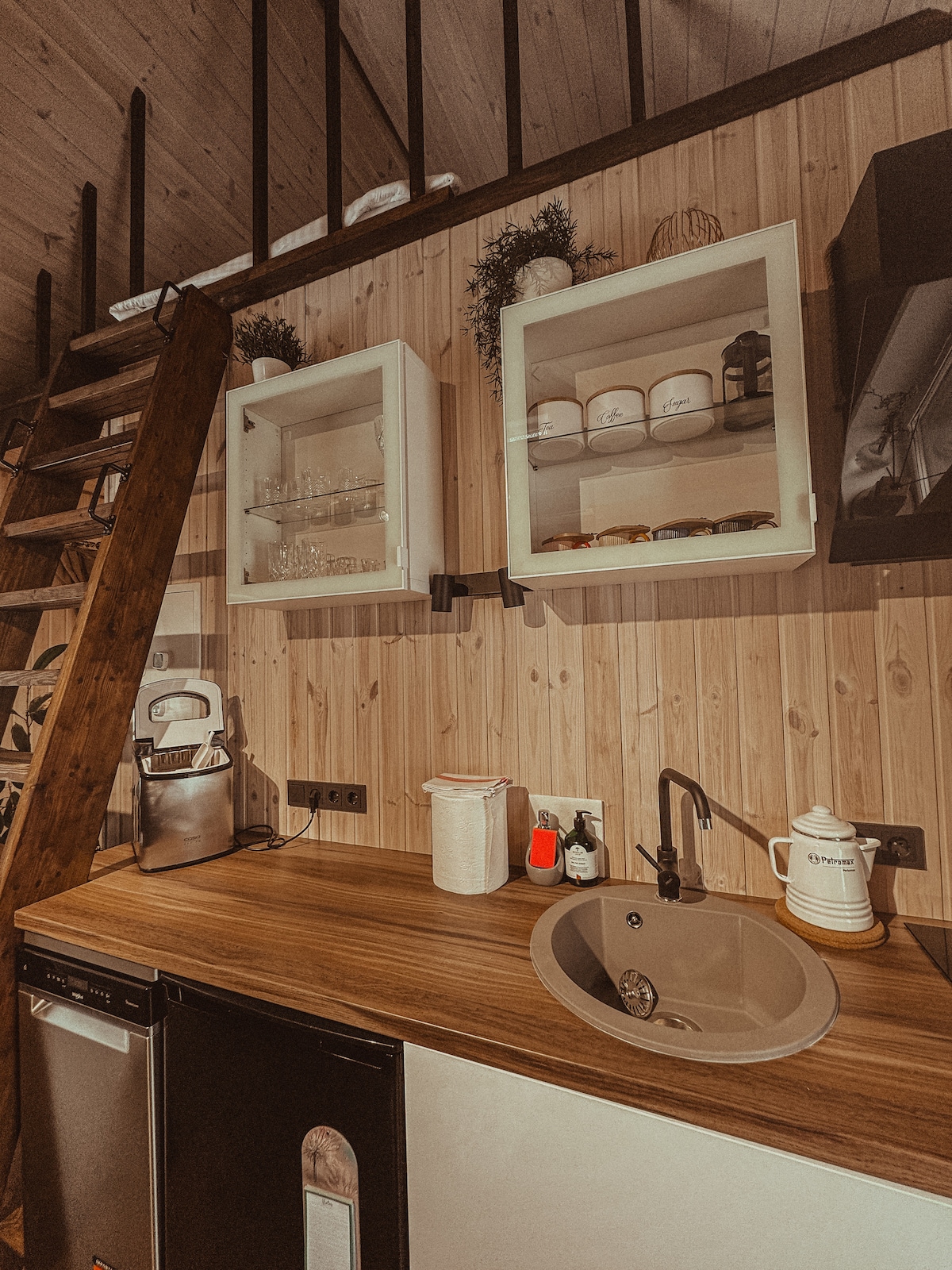 Tiny cabin Vasara (eng. Summer) is perfect for couples or small families who love nature and searches for a gate away from the city. Cabin has one double and one single bed, shower and small kitchen. 'Vasara' is situated in ecological farm Kemešys and is available only during summer months. It is quite distant from the other buildings in the farm so you could enjoy your privacy. Located on the bank of lake Kemešys 'Vasara' also has a private footbridge to the lake and a terrace with amazing view
