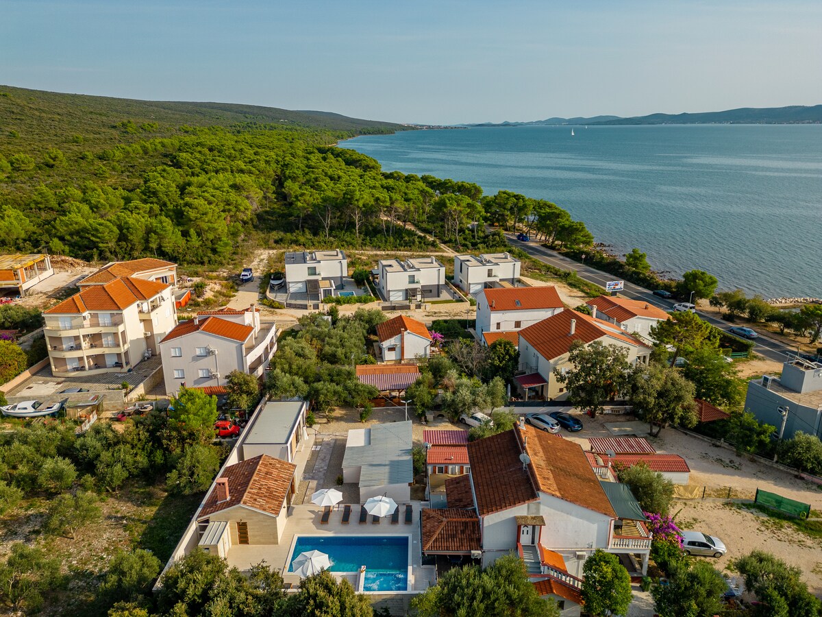 Casa AL ESTE is not just another villa in Croatia..it's your unique summer escape in one of the most beautiful bays in Petrčane Zadar..our goal was to create a place for YOU to be HAPPY from the moment you arrive..it's a dream & for sure a destination you don't want to leave..PURE JOY..200m2 highest level of excellence, 40m2 pool, private fitness & yoga area, sauna, 3 bedrooms, 1 huge comfy couchbed, 3 bathrooms, 5 parking spots & lots of other luxury details for up to 5 persons! Just BOOK it!!