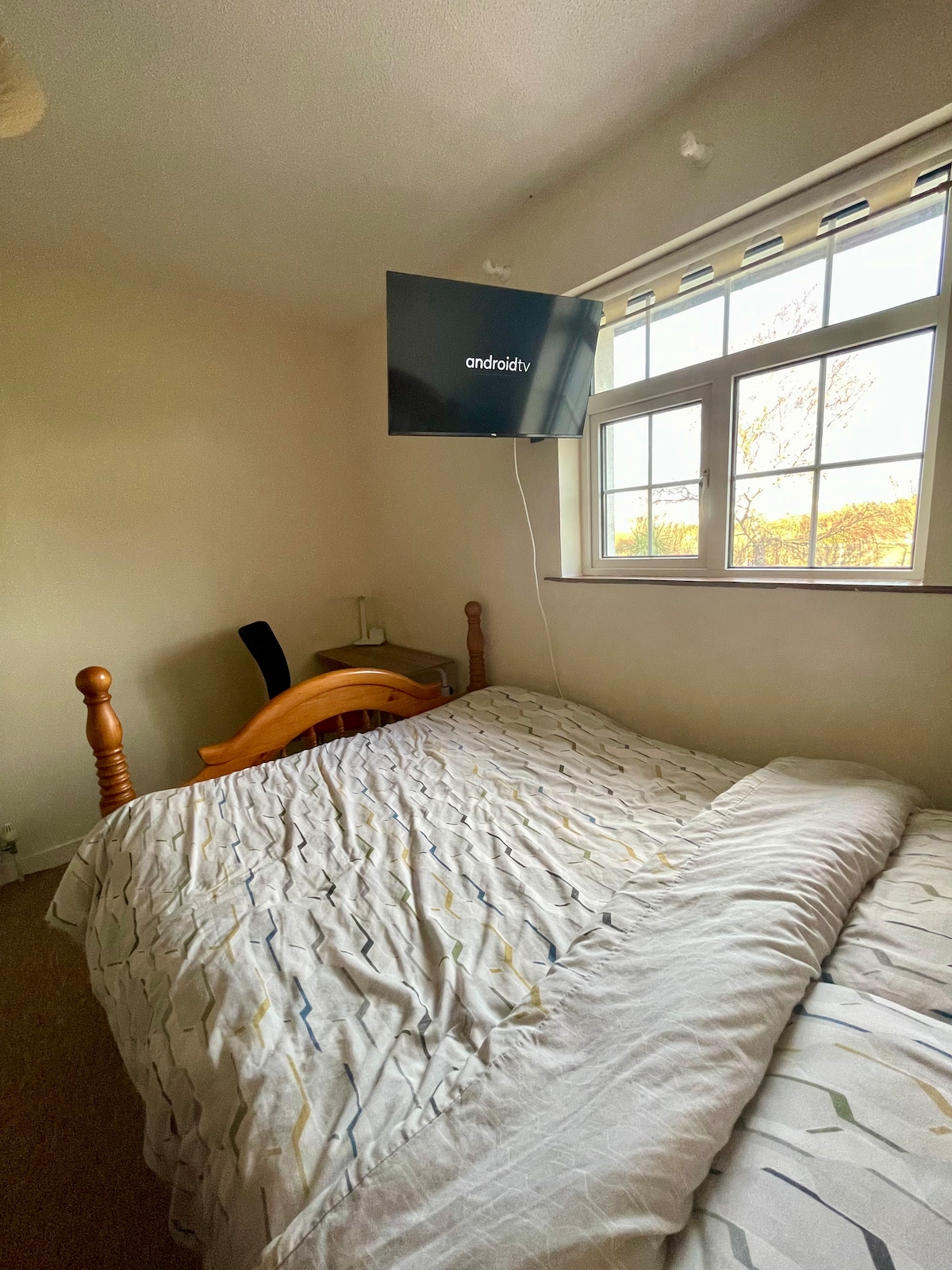 This room would suit a Corporate Visitor. Large room with mini fridge, microwave, kettle etc. Also office area (Desk & Chair) Bright Room, & Very Comfortable The owner of the house (Yvonne) qualified chef and can provide light Breakfast Packed Lunch and Evening Meal (all home cooked) on Request (Additional)