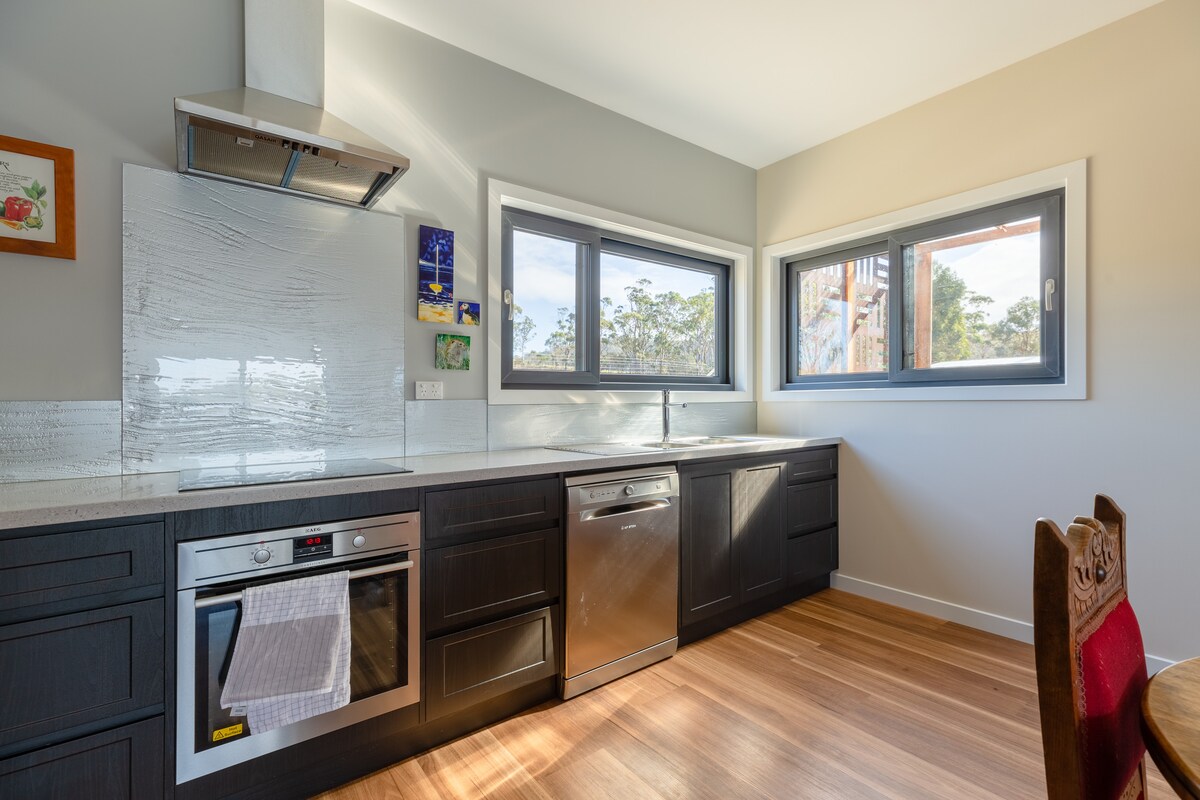 Carlton River Escape was completed in 2023 and built as a peaceful hide away retreat on the back 50 acres of our property. It is nestled right beside our Swift Parrot Conservation Forest area which also shares it space with our local wallabies, wombats, echidnas, pademelons, possums, and eagles. Amid the fresh Tassie air, and the incredible forest views, you will feel completely relaxed listening to the sounds of the wildlife while enjoying the luxury of a secluded brand new home.