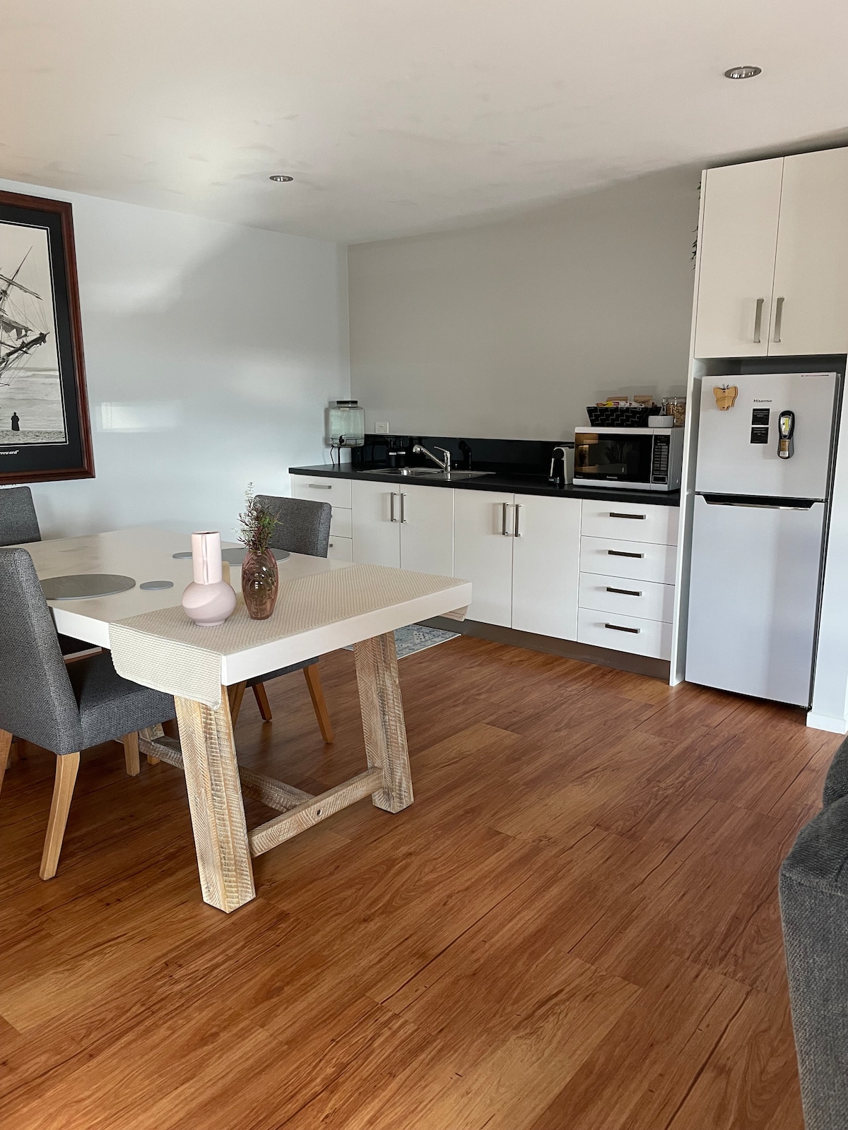 The apartment is self contained, comprising of 2 bedrooms, 1 bathroom, separate toilet and an open plan modern kitchen, dining and lounge. The 2nd bedroom can either have 2 single beds or 1 king bed. The modular lounge converts to a double bed. This is non-smoking accommodation The unit is attached to our own house, but is divided by a breezeway which acts like an airlock. So quite independent from our house.