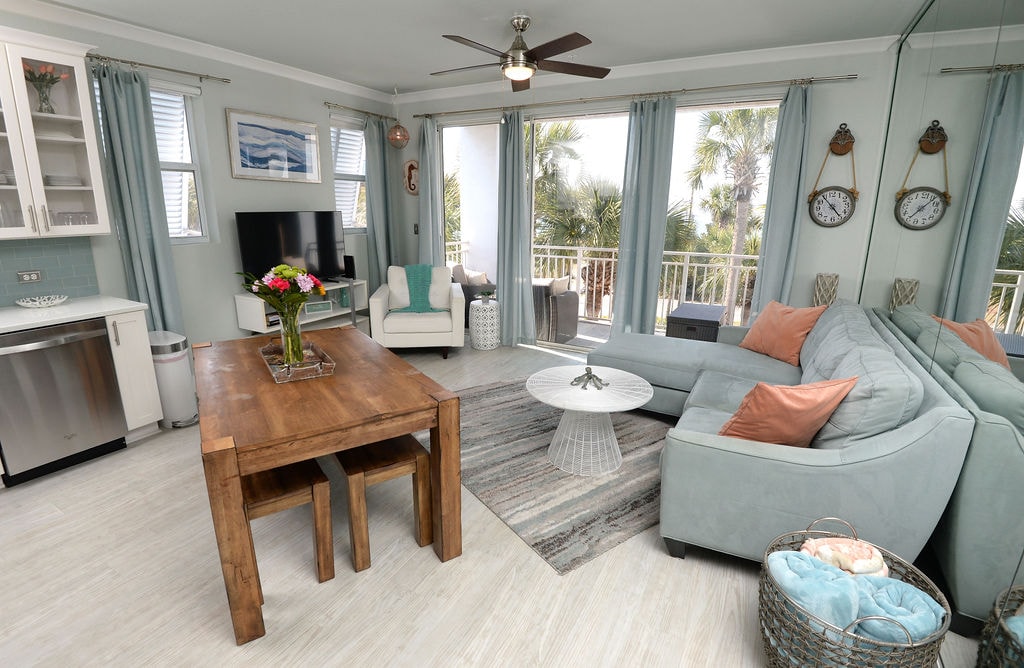 Step into The Hideaway At Palms North and immerse yourself in this sun-filled airy space with vaulted ceilings and a modern, coastal chic interior. Our recently renovated beach condo offers an inviting place to unwind after a day spent soaking up the sun on 30A's iconic white sand beaches. Whether you're here on a honeymoon or bringing the kids along, The Hideaway's private beach access, desirable location, amenities, and thoughtful design touches are sure to make your vacation memorable.