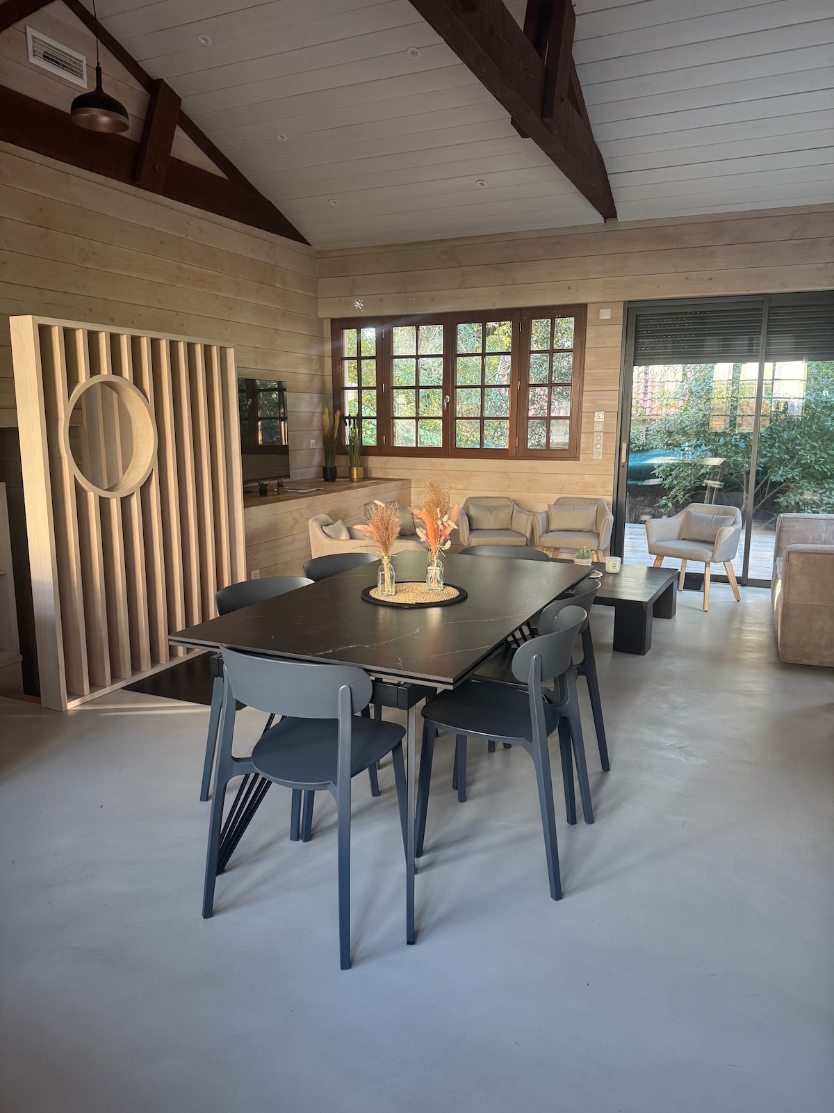 Nestled under the oaks and quiet, we invite you to discover our charming new 40 m2 studio, ideally located between Arcachon and Cap Ferret. This studio, both spacious and comfortable, is equipped with a modern kitchen, reversible air conditioning and a workspace equipped with a fiber connection. A parking space is available with the possibility to recharge your electric vehicle.