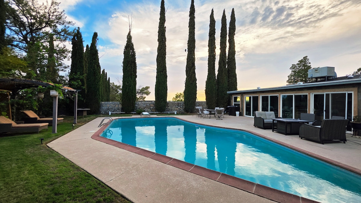 Howdy Traveler! Experience Southwest bliss in our modern farmhouse, minutes away from horseback riding, the Rio Grande, vineyards, and shops. Get comfy in the theater room, handle tasks in the office, and enjoy music with speakers throughout. Kids have a playground, while the fire pit and starlit sky await. Lounge outdoors galore, explore the jalapeño garden, and own a private backyard with a grill. Embrace Old West El Paso vibes – it's all here, partner!