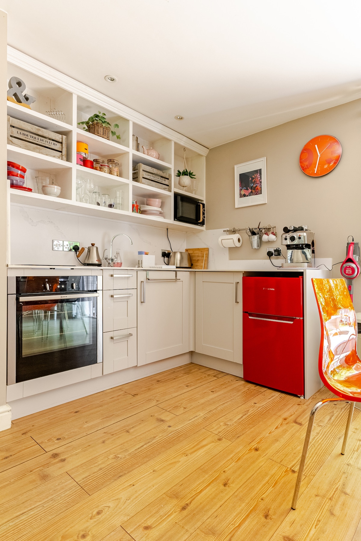 Enjoy your perfect getaway in this award winning 2 bed penthouse apartment with 180 degree sea views in the heart of the tranquil Alum Chine area of Bournemouth just a few minutes walk from the beach. The property boasts two dining areas, one of which sits on the large balcony with views across Bournemouth beach and a bespoke wood burning stove for the winter nights. The open plan kitchen leads onto a cozy living room where you can enjoy Sky Glass TV entertainment through super fast WiFi.