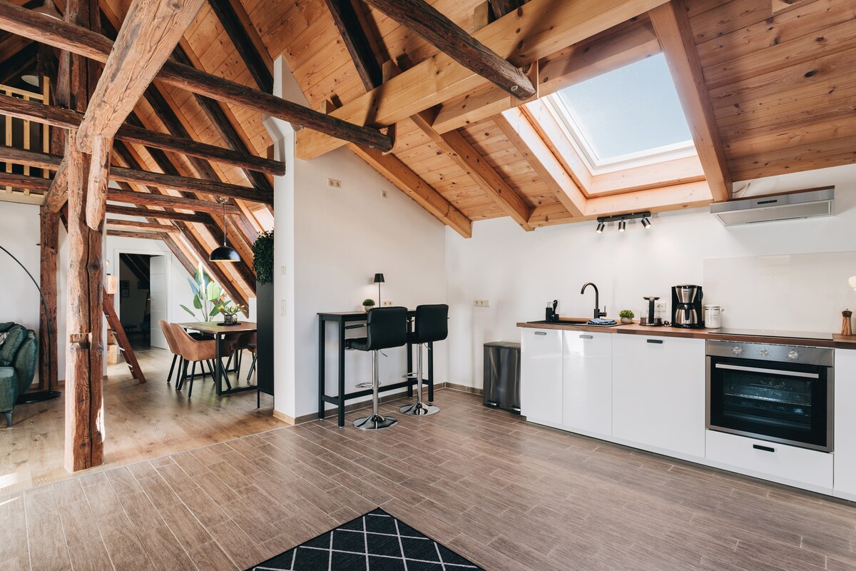 On ca. 65sqm a cozy atmosphere with many amenities awaits you. The brand new loft offers an open kitchen, shower & toilet and an enchanting bedroom under the starry sky. With contemporary design, selected materials and colors, soft lighting and many lovely details, SOLÉY creates the right atmosphere for a wonderful break from the daily routine.