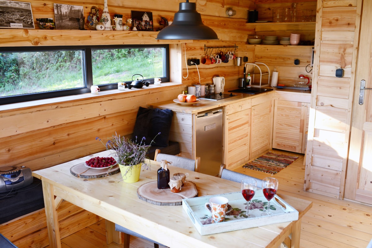 Polne Chaty are unique and charming ecological houses in the bosom of nature. You will experience peace and quiet here, as well as space to spend quality time with yourself, as a couple or with your loved ones. Here you will find a view of the meadows and the majestic Spisz hills, and a few steps from us you will admire the beautiful panorama of the Tatra Mountains. We built the houses for ourselves and we live in one of them, so we will be happy to host you here.