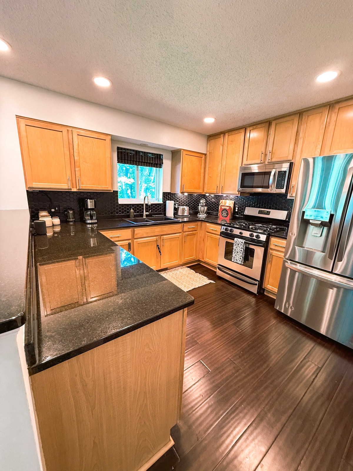 THIS IS NOT the whole home, but is the entire lower level, which feels like one of the units in a duplex. Cabinesque, roomy, close to almost anything you would need, cozy- these are a few words to describe it. You have your own private locked entrance from the garage, where you can park. The door between the levels is locked. This space boasts a gorgeous, new bathroom, new kitchen, huge flat screen tv, 2 large bedrooms, with the dining room and living room connected.