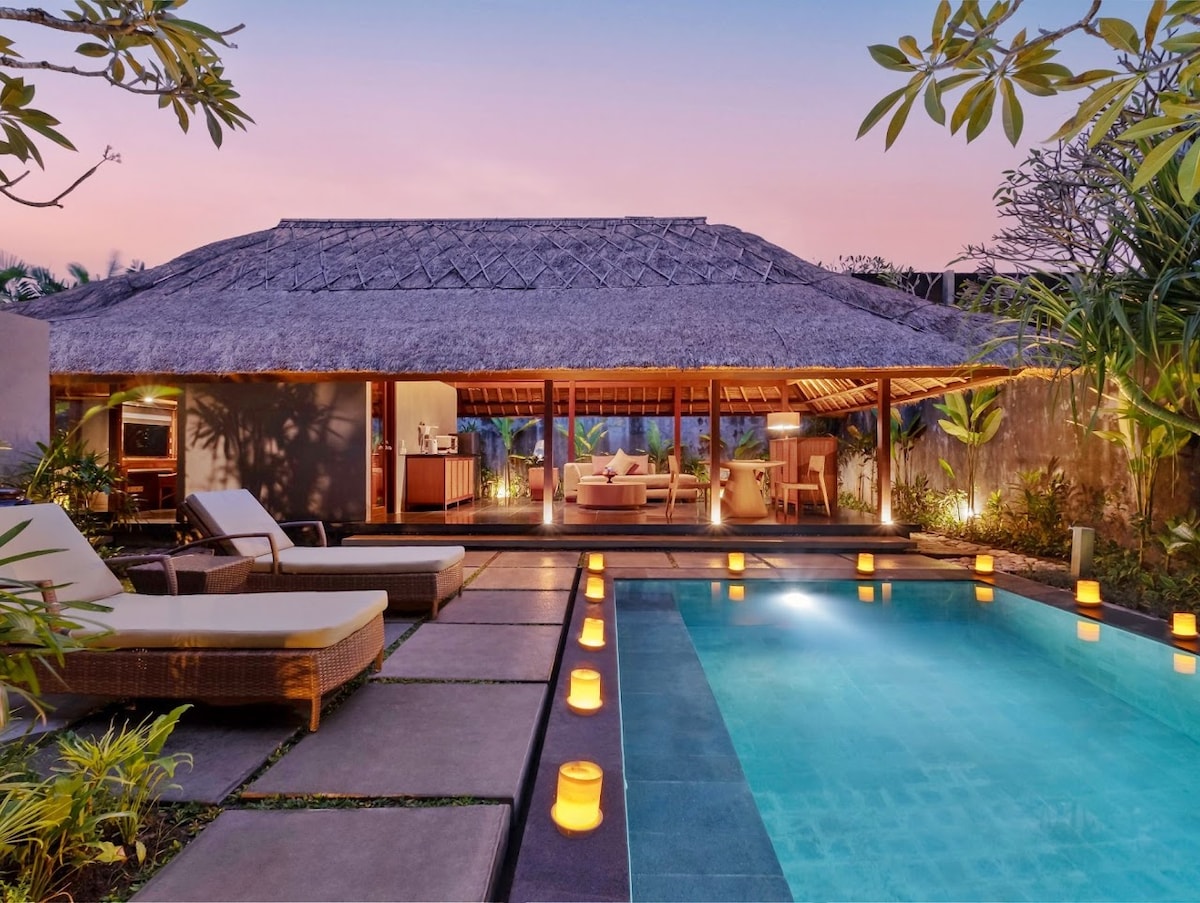Just 2 minute stroll from Seminyak Beach Wake up to the sound of the ocean breeze. This cozy 1 bedroom villa offers everything for your perfect Bali escape : relaxing outdoor pool, complete equipped kitchen, and peaceful tropical surroundings. Step outside and youโll find Seminyakโs famous cafรฉs and restaurants like KU DE TA, Gado Gado, and Moonlite Kitchen & Bar only walk away. Designed for travelers who love Bali vibrant scene. *new list in airbnb, countless 5 โญ review from another platform