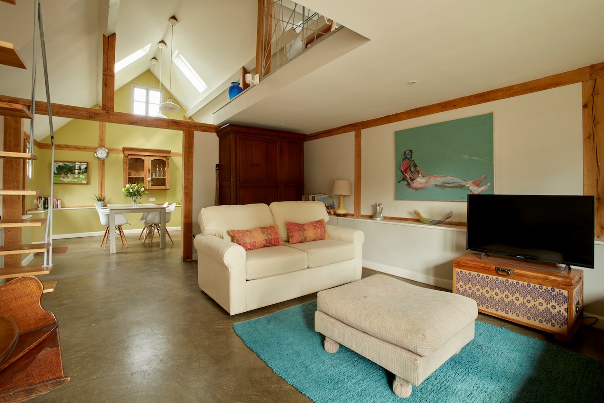 Welcome to our peaceful first-floor apartment, recently converted for quiet luxury with iconic mid-century design pieces, antique finds, and contemporary artwork from your professional artist hosts. Accessible via a wide spiral staircase, this private retreat features a spacious and comfortable sitting room with light-filled double-aspect sash windows, a balcony with idyllic paddock views, a mini-kitchen and a large separate bedroom. Perfect for couples, business travelers, sorry, no infants.