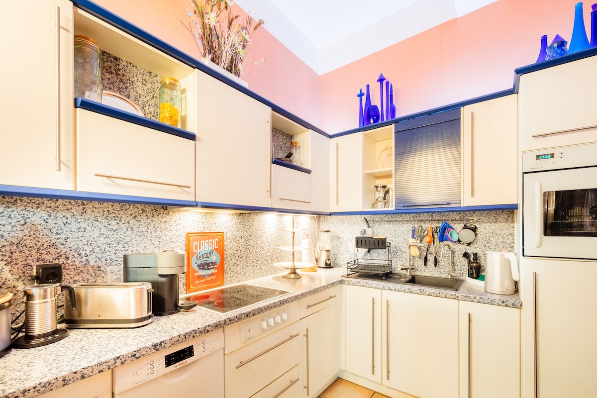 In a prime location, immerse yourself in a lively Berlin with its typical flair and enjoy a stylish home away from home right on the Spree in the middle of vibrant Kreuzberg. The quietly located apartment in a former jam factory was furnished in January 2012 with love and a sure sense of beautiful interiors. Relaxed beach bars, trendy clubs and good restaurants are around the corner. Countless genuine Berlin pubs are open all night and for the appetite in between there are snack bars with doner kebab, pizza and homemade burgers of the highest quality. It is five minutes to the Künstlerhaus Betanien, ten minutes to the "Badeschiff," a swimming pool with a pontoon floating on the Spree, from which you can admire large passing ships. Quickly get away The transport connection is perfect. You are 300 m from the U-Bahn [subway], 800 m from the S-Bahn [suburban train] and can reach all the cultural highlights and centers of Berlin in no time. Your home away from home The apartment has been furnished with carefully selected individual pieces according to all the rules of interior design. A heated floor made of smoked oak real wood parquet forms the matching – and barefoot warm – stylish basis. Much of the furniture comes from the boardroom of a former sauerkraut factory in Brandenburg – discovered by a friendly location scout during the filming of a film project. For comfort and well-being, there is a large bright bathroom with a bathtub and shower, a kitchen with an induction stove, microwave, various kitchen appliances such as a kettle, etc. and a practical washing machine. Fast Wi-Fi and TV with cable connection ensure fast Internet connection and good entertainment. Right down in the courtyard there are two playgrounds – if you come with your children – and a large communal terrace for everyone with views over the Spree. A good place to unwind after a day in Berlin. All rooms are characterized by a consistently generous design that creates clarity and leaves room for freedom. The colorful pictures of the landlady, a Munich-born artist and illustrator, create a good mood and an artistically inspired atmosphere. House stories The house at Köpenicker Straße 10a has a long history. The building was built in 1911 in the Art Nouveau style on the dry meadows of the calico printers and wool dyers on the Spree. The tenants of this time were craftsmen, merchants and officers – Helmut Aust Marmeladen-und Konservenfabrik GmbH settled in two of the transverse buildings. Directly behind the building, the river bathing establishment founded by Ernst von Pfuel had existed since 1817, the first military training and swimming pool in Berlin, which continued until 1933. The Pfuel'sche Badeanstalt shaped the image of all other Berlin river baths, which were built on piles and had a shielded water pool protected from prying eyes. Over the years, the property has been modernized again and again – nothing has been lost from the original charm of the founding period to this day. Welcome Please note that the Berlin Senate levied a bed tax of 5% of the accommodation costs as of January 1, 2014 (tourist tax). Unfortunately, I have to receive this amount in cash on site (against receipt) from my guests.... Entire apartment, courtyards and water terrace I live with my two children in the apartment next door and am available for questions (almost) at any time. An Italian café is just opposite. There is coffee as well as lunch dishes and cake. A supermarket is right next door. Kreuzberg is a spacious district where many students and artists live. Here you will also find second-hand stores, street art, casual bars and snack stands. U12, Schlesisches Tor stop, several bus lines, Warschauer Str or Ostbahnhof S-Bahn The apartment is located on the ground floor of a green courtyard. In front of the apartment there is a bench for smokers. The apartment has automatic shutters, so the rooms can be completely darkened on request.