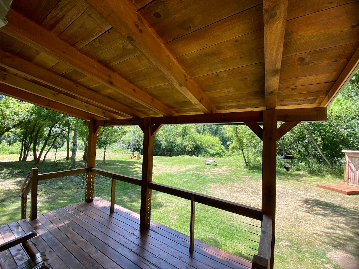 Remote, tranquil, quiet and private getaway on 5.8 acres on the banks of the Elk Creek; only 1.5 hours from the Twin Cities! This creek is known as a class 1 trout stream. Guests can enjoy fishing, sight seeing, canoeing and kayaking the Chippewa River or Elk Lake, biking, hiking, atv/utv and snowmobile trails nearby as well. Enter a world of peace and calm deep in the woods. This is a beautiful rustic cabin that has been beautifully restored. Permit issued and inspected by Dunn County.