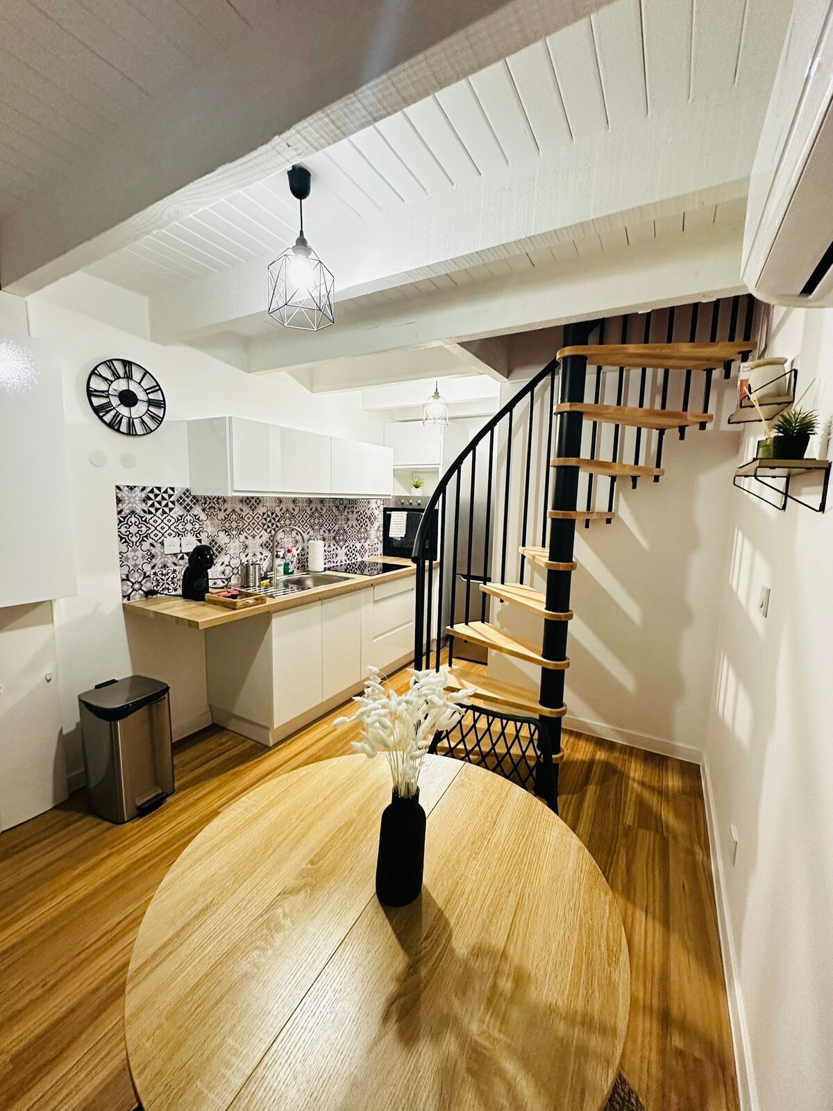Organized as a duplex, your bed and breakfast consists of a bedroom and an adjoining bathroom, and a living room equipped with a kitchen. The decor combines tradition and modernity, with the original stone and terracotta floors alongside the canvases of a contemporary artist. These two spaces total a beautiful area of 40 m2, they are connected by a magnificent wrought iron spiral staircase that can be very narrow! Private parking available at an additional cost.