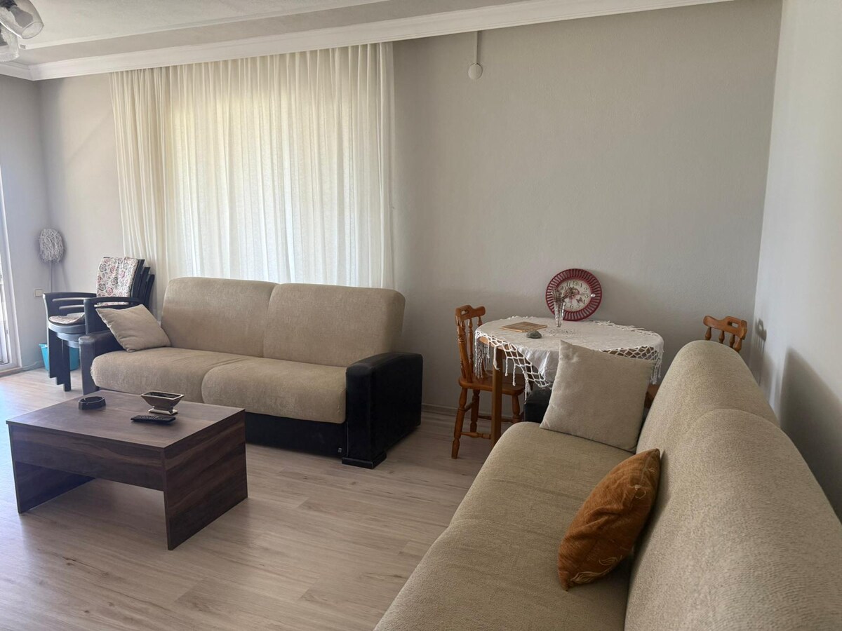 You can relax as a family in this peaceful accommodation. 300 m to the beach. It has 2 balconies. Our apartment is for 5 people. There are 2 double beds. There is hot water, stove, oven, dishwasher, hood, washing machine, television, refrigerator. There is unlimited internet. There is a park bed for our guests with babies. 4 km to Altınoluk. 10 km to Akçay. 27 km to the airport. It is on the minibus and bus route. Our apartment is disinfected after each check-in and check-out.