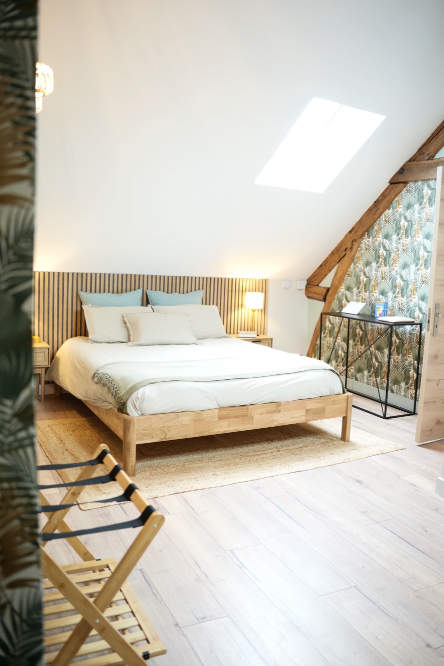 ✨ Safe Place : Niché sous les toits, ce cocon pensé en Feng Shui est une bulle hors du temps. 🌎 Ici, pas d’ondes, pas d’écrans… juste le silence, une baignoire balnéo, des objets apaisants (boxes Morphée méditation et étirements, tapis et brique de Yoga, luminothérapie, livres…) et des matières choisies pour leur douceur à l’âme et à la planète. Prestations bien-être en option (massages, sophrologie). 💆 Un refuge pour se retrouver, respirer, ralentir. 🧘 Pour simplement être.