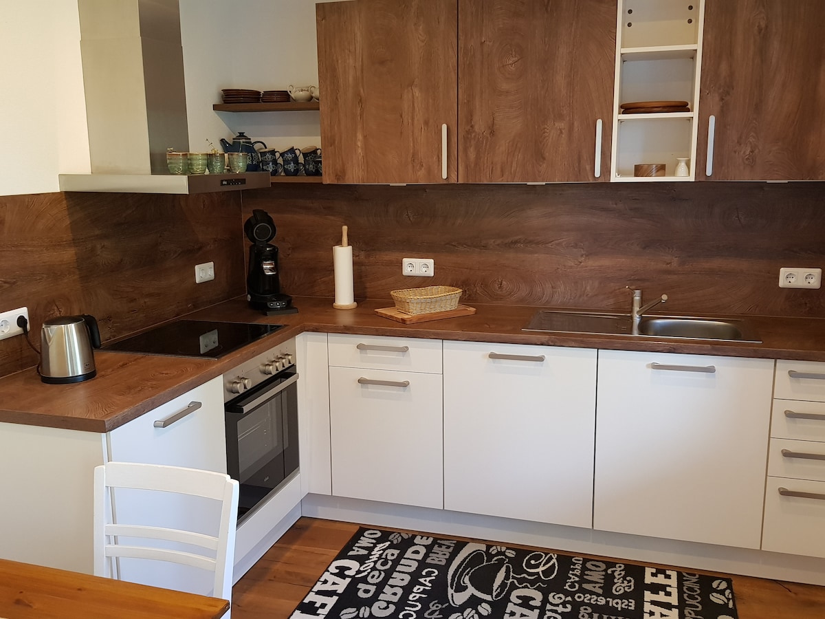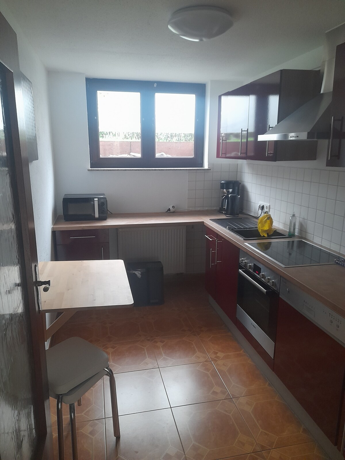 Spacious apartment with 65 m² for 2 people (min. 2 nights 3 people), with living room (808 m satellite TV, Wi-Fi) incl. wood-burning stove (wood available), kitchen, bathroom with rain shower, tub and Wama. Accessibility: To the A45 highway (4 km), a train station is available in the village. The apartment is located in the basement of a detached family house with garden, including separate access via its own terrace. There is a barbecue area, table, chairs. A toddler travel bed can be provided upon request.