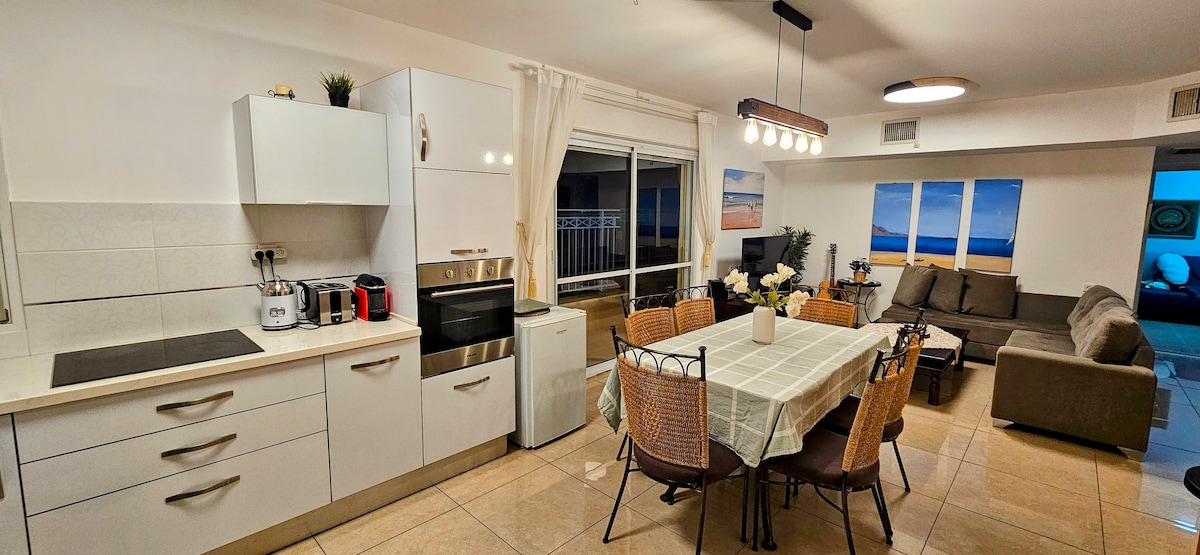 A fully renovated, spacious, beautiful apartment. located in a quiet and safe complex, just a few minutes' walk from the beach, restaurants and bars and few steps from a large supermarket. The apartment has bedroom, a living room, a dining area, fully equipped kitchen, The apartment has a balcony with stuning panoramic sea view which you can sit and enjoy eilat bay and the red mountains.