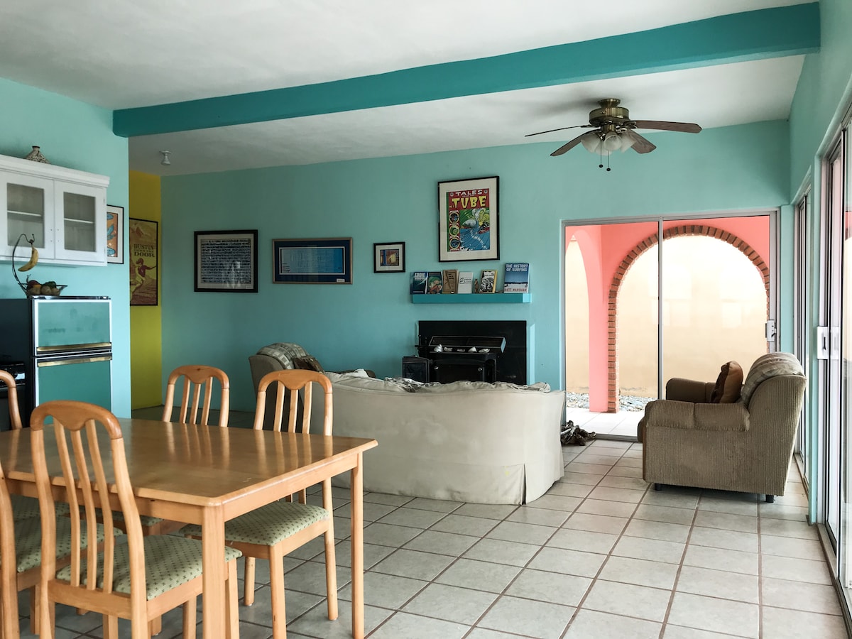 Bring the whole family to this great place with lots of room to enjoy. Spacious and cozy for comfortable stay. 3 bedrooms, 2 baths and living, kitchen and dinning room are open space concept. Walking distance to the beach and the mountains and ten minute drive to La Bufadora. Yoga Classes and Food Catering onsite for an extra fee.