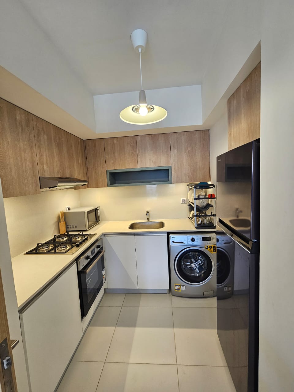 3 bedrooms including 1 master 2 bathrooms 1 half bathroom Nanny room with its own bathroom Fully functional kitchen - dishwasher - washing machine - fridge - oven - stove Huge garden with a pool and greenery view All rooms have AC Private Parking