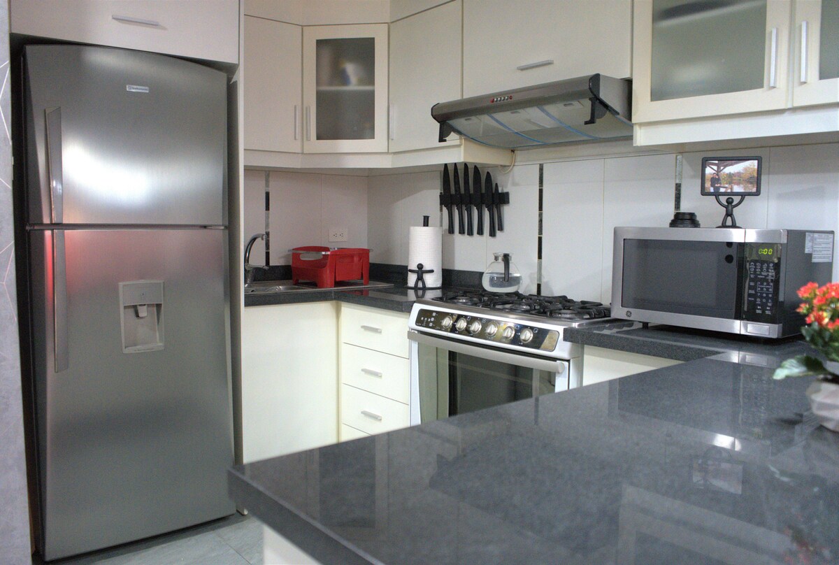 Brand new apartment in one of the best neighborhoods in Quito (Carolina). Walking distance to Carolina Park. Queen size bed, full size sleeper sofa, equipped with kitchen, fridge, microwave, laundry area, 1 parking lot, 24 h. security guard.
