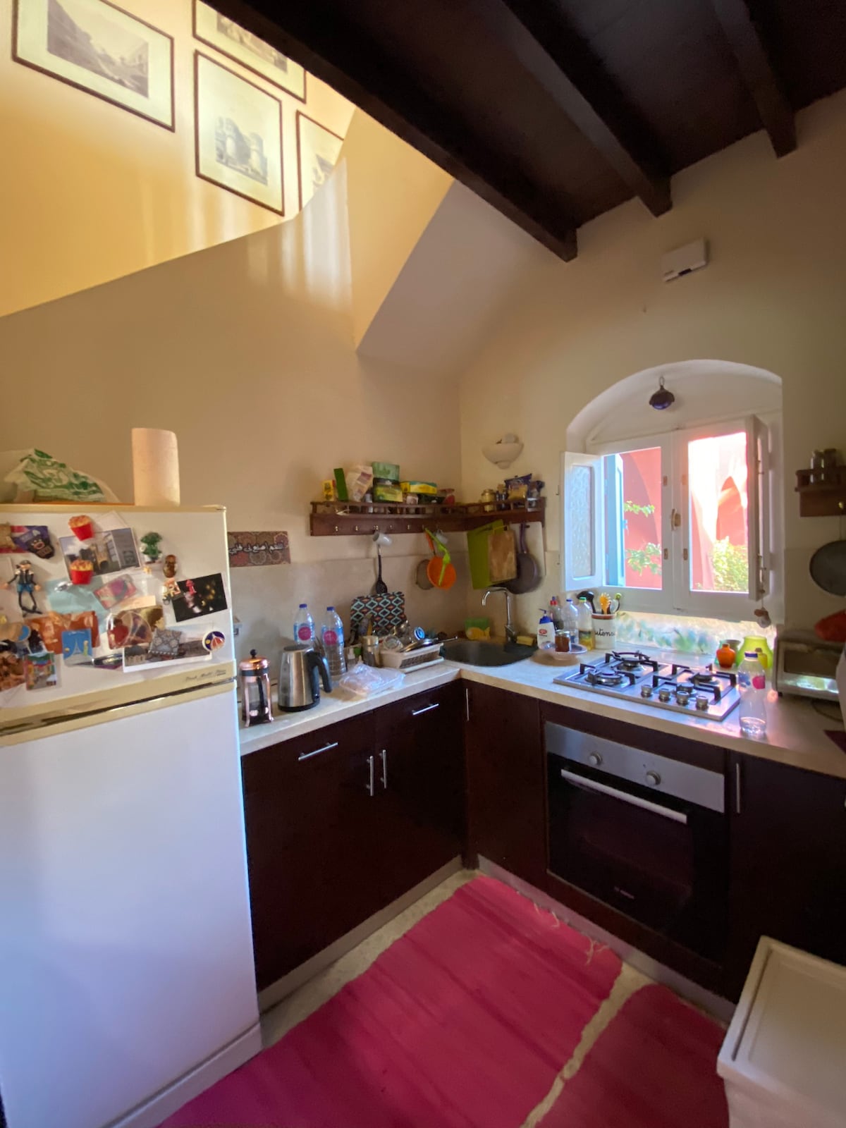 Newley refurbished, cozy, charming one bedroom chalet in the heart of Gouna. The house is located in the beautiful Kafr area (Downtown) and is a stone’s throw away from the famous Club House. It’s a 5-10 min walk from the main buzzing restaurant and bar street, supermarkets, shops, pharmacy and hairdresser. The chalet is the perfect home away from home for those looking for an enchanting and relaxing stay. Ideal for couples and solo travelers alike.