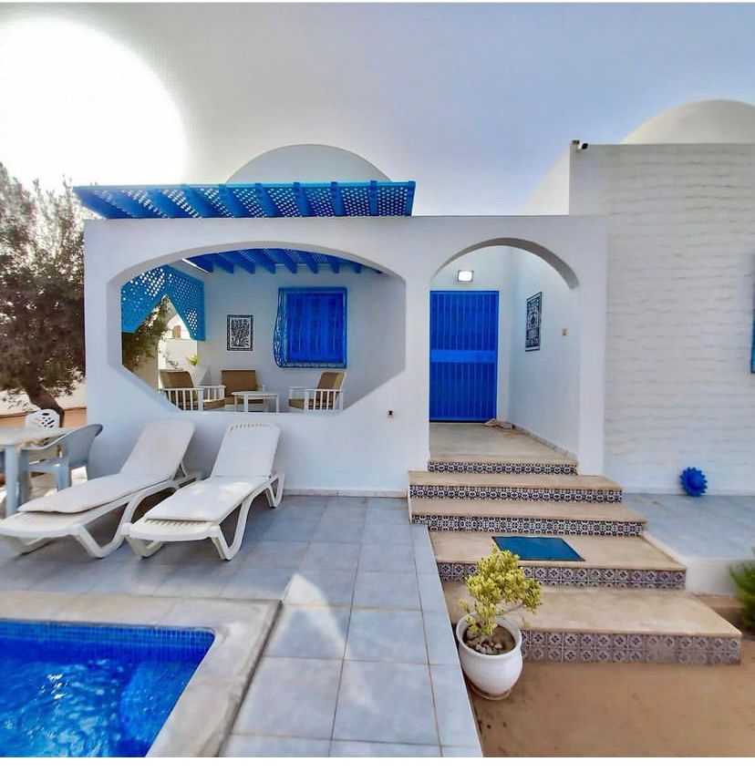 ⛱️. Discover absolute luxury in Djerba by staying in our prestigious villa, ideally located just steps from the beach Ideal for vacations with family or friends, the villa has 3 spacious suites, a comfortable living room, an equipped kitchen overlooking a private swimming pool without neighbors and very secure, as well as a terrace with sea views. We can arrange meal delivery, breakfasts Heated Jacuzzi at an extra cost