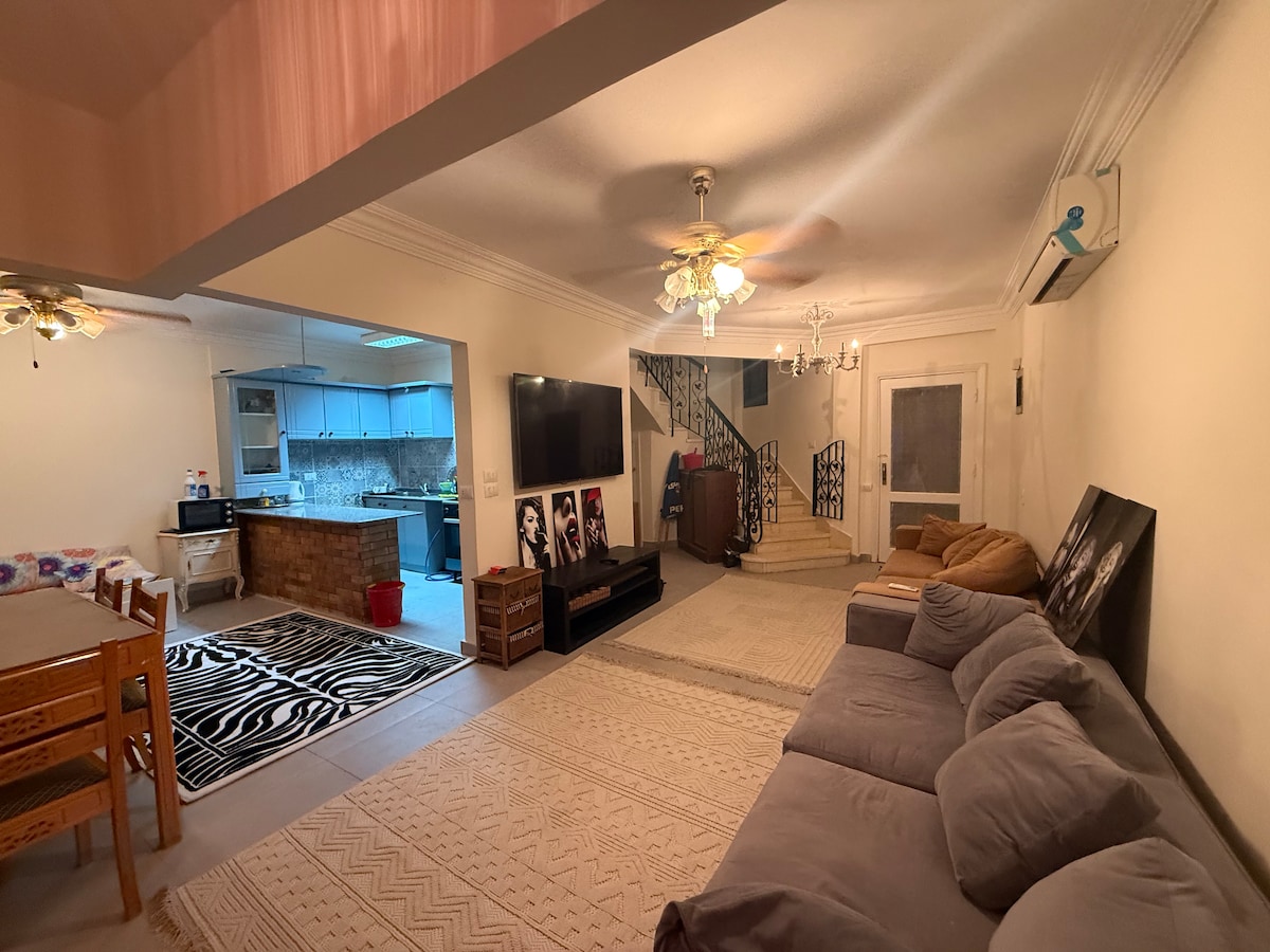 An amazing ground three bedrooms ensuite chalet with a nanny's room and bathroom located in the best community compound in Ain sokhna . All rooms are airconditioned/heated .The chalet has an open concept kitchen with built in appliances , cozy living area .Big cable Tv and WIFI access. Daily housekeeping ,24/7 maintenance ,toiletry and amenities supply , Out door barbeque area We make sure you enjoy a luxurious hassle free vacation .