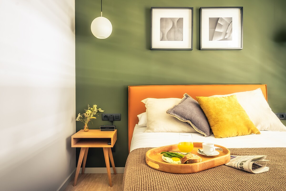 Start the day around the sleek, wooden dining table, then take a newspaper up to the sun-drenched rooftop terrace at this premium, colorful apartment. Cool things down with a refreshing shower in the polished concrete bathroom. More details? High-end Siemens appliances, professional grade internet, Bose speakers, large beds with 300 thread count linens & pillow selection, large wardrobes, safety box, washer, dryer & bike room.