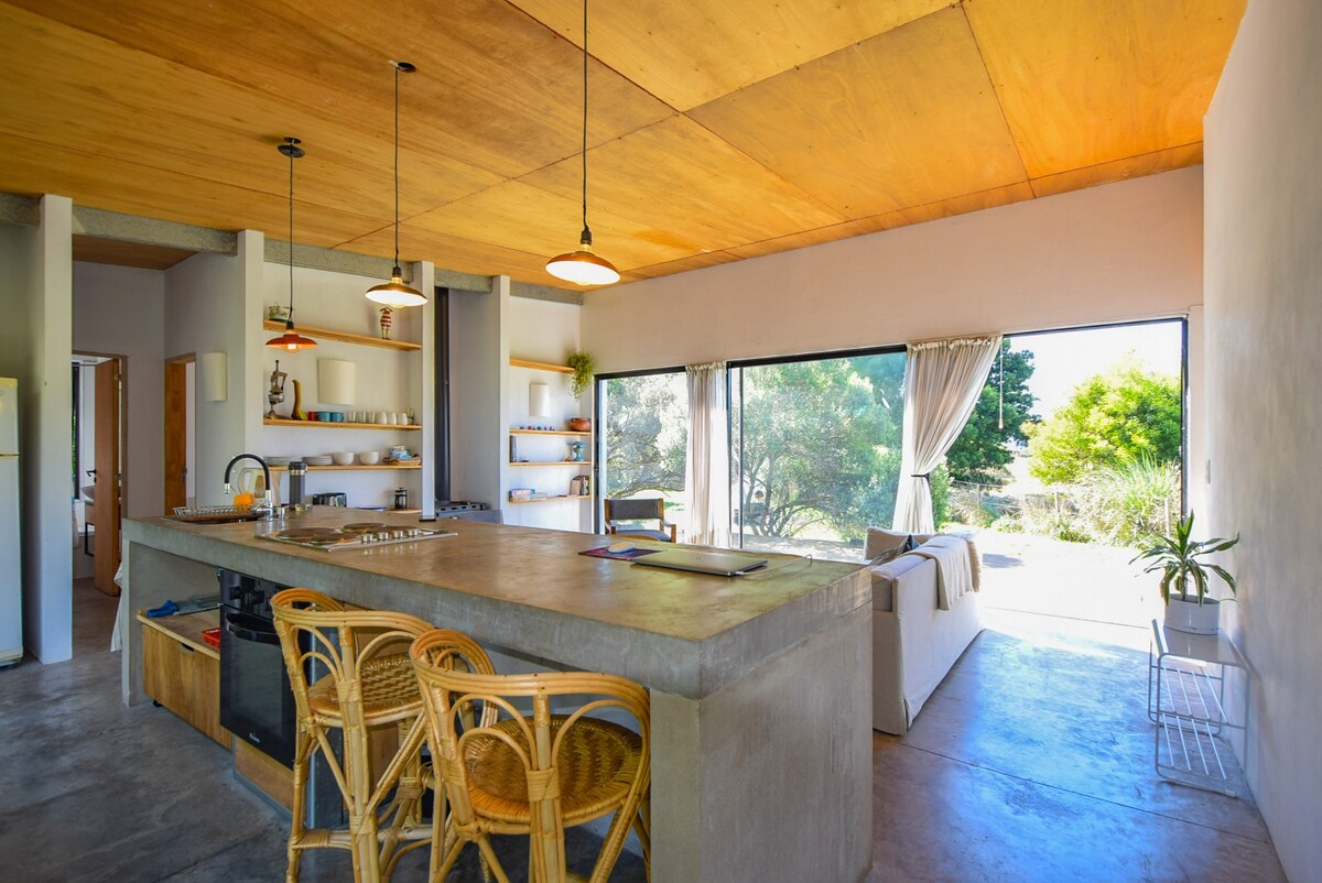 Vivi el campo y el mar a 400 metros de la playa Cruz del Sur. Disfrutá de un entorno natural y relajante. Se trata de una casa modular que construimos para disfrutar en familia y que decidimos alquilar en épocas de año en las que no la usamos. Posee un dormitorio con cama matrimonial que puede transformarse en 2 singles, una cocina totalmente equipada y un living con sillones y salamandra para la cual dejamos leña disponible. En el dormitorio hay una estufa. Cuenta con servicio de wifi.