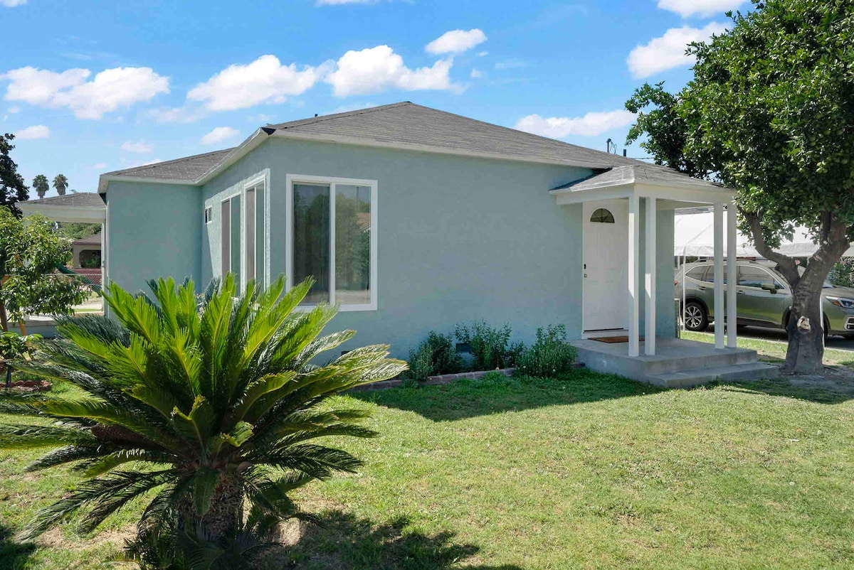 This fully private, standalone home is located in North El Monte, just 25 minutes from downtown Los Angeles, 20 minutes from Pasadena, and about 30 minutes from Disneyland and Universal Studios. The unit features its own private entrance, patio, and dedicated three-car parking. Guests enjoy a private electric gate and Tesla charger. A washer and dryer are located on the private patio. There are no shared spaces, ensuring complete privacy throughout your stay.