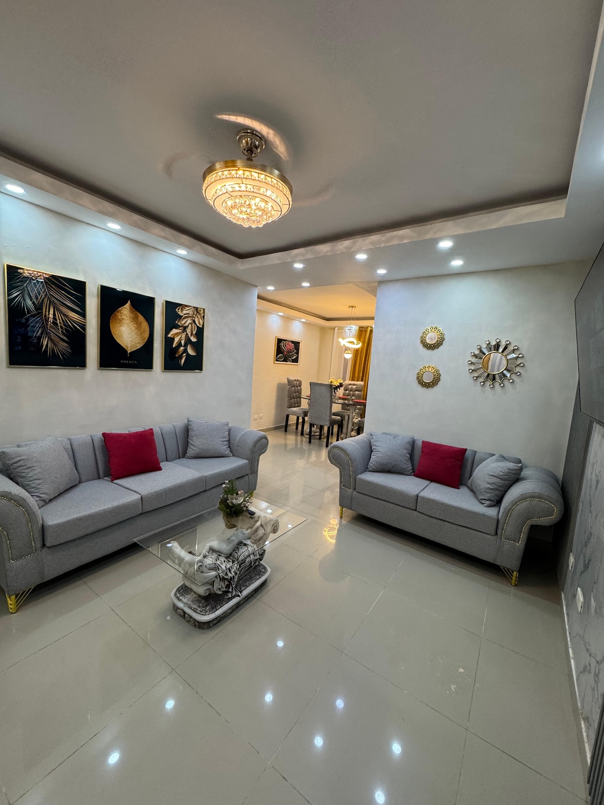 Modern apartment in Residencial Prado Altos de San Luis, Stage 5 – Santo Domingo Este. Located on the fourth floor, this stylish apartment features luxury décor in both the living room and bedrooms, with very cold air conditioning in every room for your comfort. The fully equipped kitchen has everything you need, and welcome coffee is included. Just minutes from several supermarkets and with quick access to the main avenue, it’s the perfect blend of convenience and comfort.