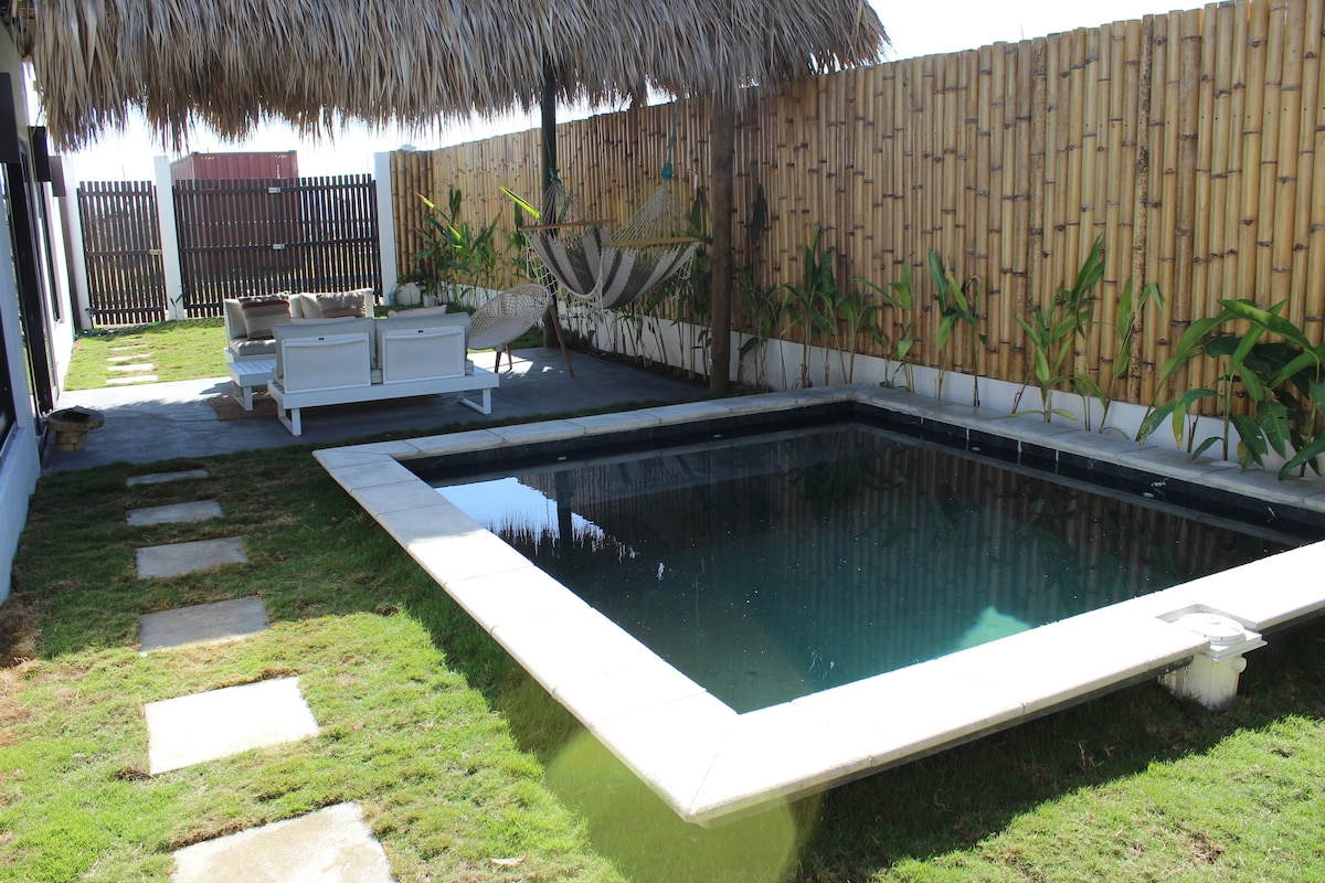 Escape to Cocoon, a private beach retreat designed for couples seeking for peaceful and romantic getaway. Just a short walk from the beach, this cozy suite blends comfort, privacy, and relaxed coastal charm. Your space features private plunge pool, AC, a sofa and a kitchenette with everything you need. Spend your days walking along the black sand beach, surfing or exploring the nearby restaurants and beach clubs all within walking distance. Enjoy sunsets that make this destination so special.