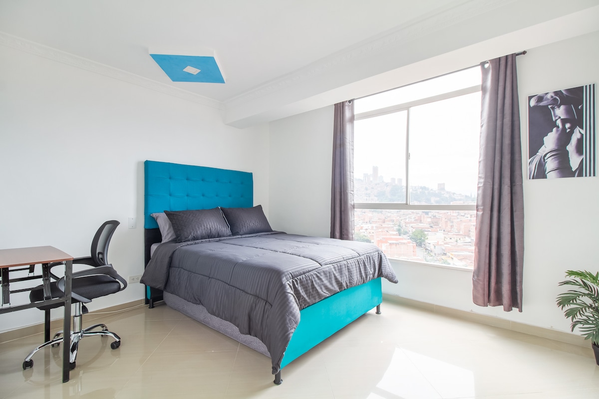 Beautiful new apartment with wide views of the city and its mountains, located in one of the most exclusive neighborhoods of Medellín, Located close to the Eafit University, in a very quiet place, close to Parque El Poblado,Parque Lleras, metro station, grocery stores .Equipped with everything you need to enjoy a pleasant stay. It has a small kitchen with the necessary implements; air conditioning, 200mbps internet, smart TV, private bathroom, large window and more