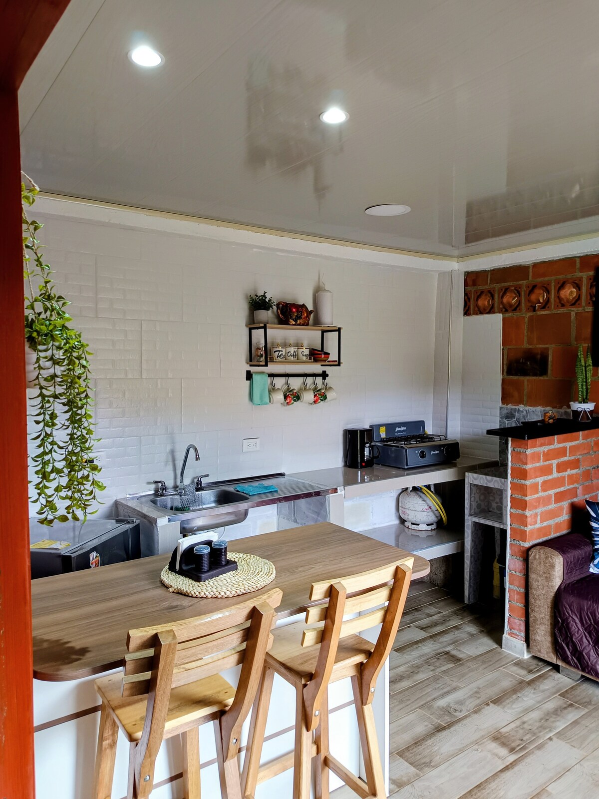 Independent cottage, ideal for 2 people, in a cool climate and surrounded by nature. Perfect for relaxing, with a fireplace, Wi-Fi, TV, a hanging net, and a secret garden that attracts birds and butterflies. If you're lucky, you might pick a fresh avocado from the tree. A peaceful space for serene guests. If you wish, you can enjoy pleasant conversations with the hosts.