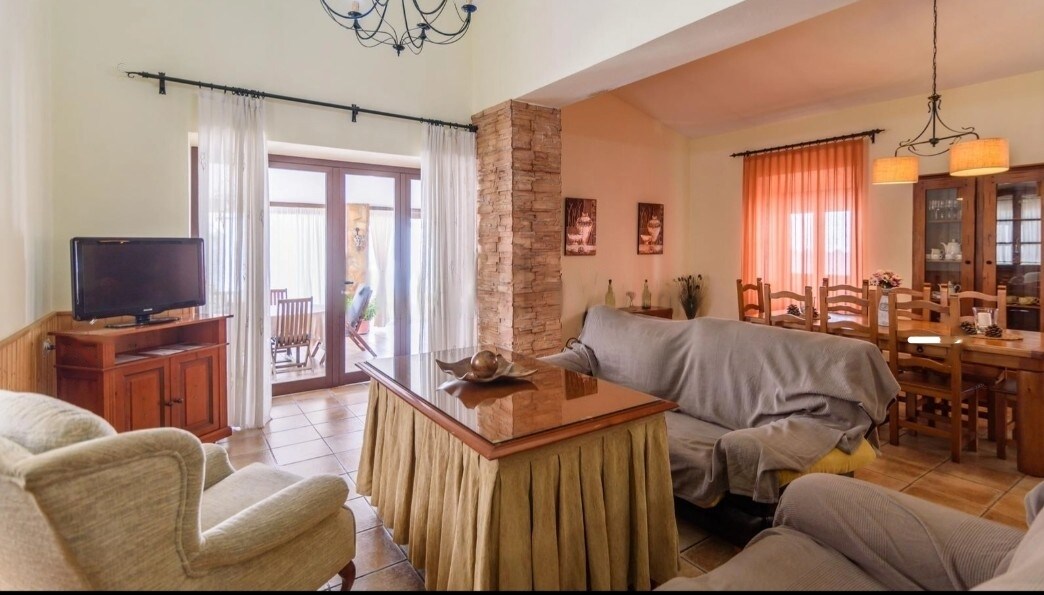 This house is our family retreat, just 45 minutes from Seville, an amazing place, where all kinds of details have been taken care of to make the stay simply perfect. Its spacious rooms, the singular color of the walls, the perfect decoration, the magnificent garden, the huge swimming pool ... is a house that, despite being of new construction, is perfectly integrated in the environment, its appearance reminds of Tuscany